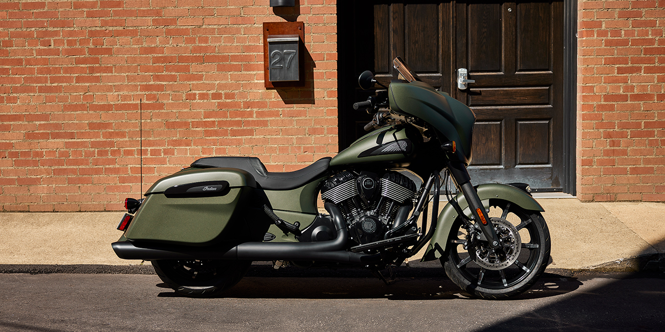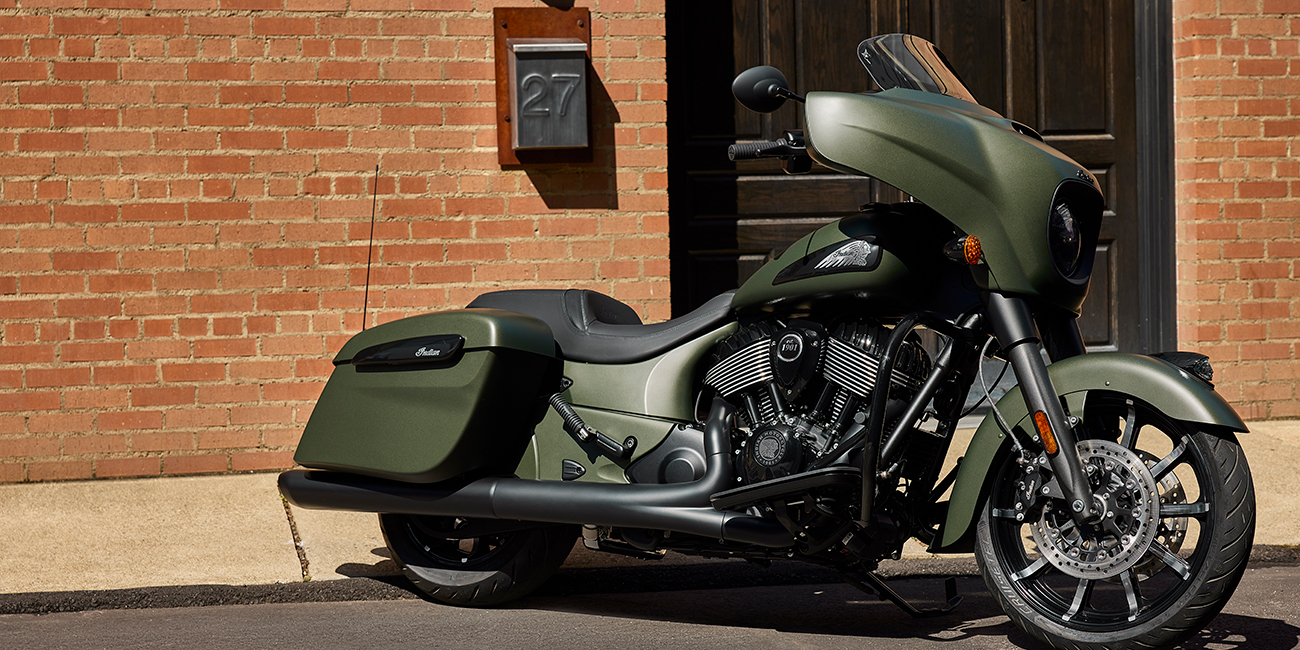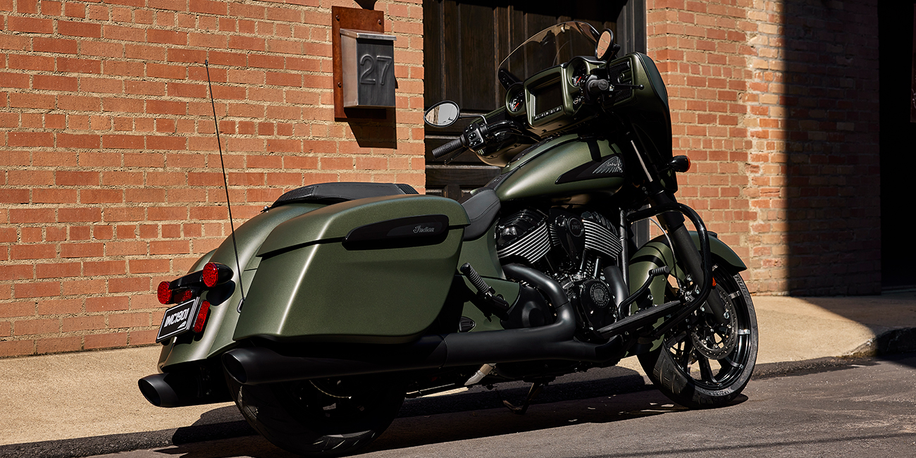 La Chieftain Dark Horse est équipée de série de l'éclairage à LED, du démarrage sans clé, du régulateur de vitesse, des sacoches à verrouillage à distance, de l'ABS et du contrôle de la pression des pneus.
