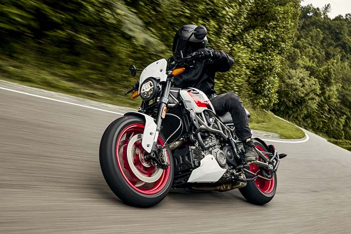 La puissance et le couple du bicylindre en V à refroidissement liquide de 1 203 cm3 et la conduite réactive s’associent pour une expérience combinant agilité et sensations fortes.